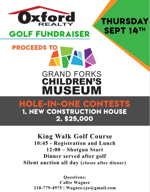 On Thursday, September 14, Oxford Realty hosted their annual golf fundraiser at the King’s Walk Golf Course, to support the Grand Forks Children’s Museum. Their goal was to raise $10,000 for the museum project. And while the dollars are still being counted, I am certain that the goal was achieved and likely exceeded!